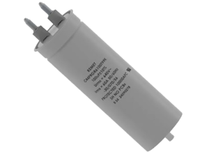 The C44P-T capacitor is a polypropylene metallized film capacitor with a cylindrical, aluminum can-type design filled with a soft, vegetable oil-based, polyurethane resin. It uses high current screw terminals, a metal deck with plastic insulators, and an overpressure safety device.